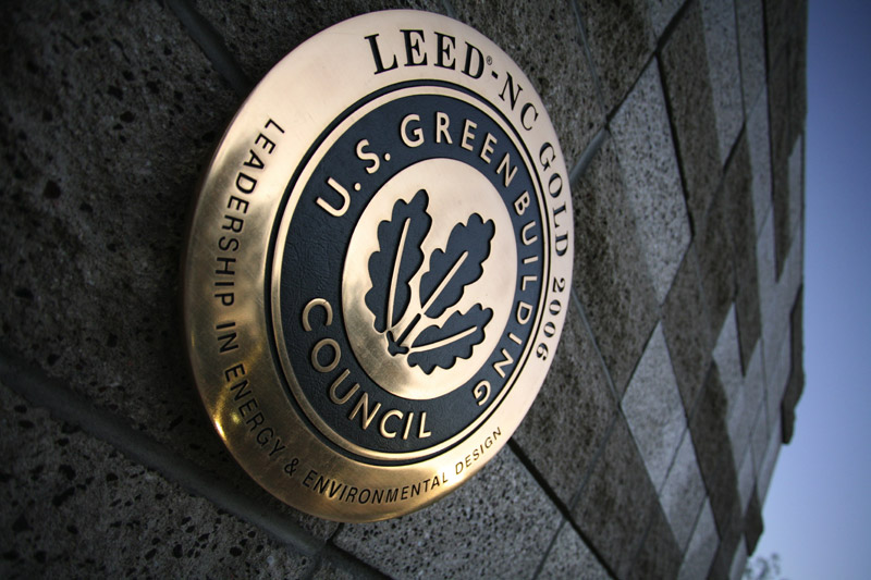 - Dual flush toilets, waterless urinals and solar powered faucets